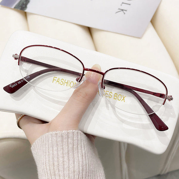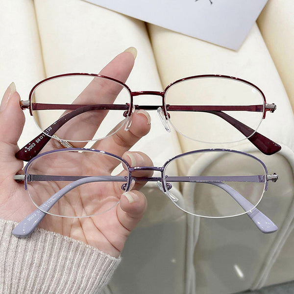 Experience unparalleled style with our women's fashionable semi-rimless anti-blue light reading glasses, boasting curved temple arms that add a touch of elegance to your look. The sleek design not only enhances the overall aesthetics but also ensures a secure and comfortable fit. Embrace the perfect blend of fashion and function with our thoughtfully crafted temple arms that elevate your style effortlessly.